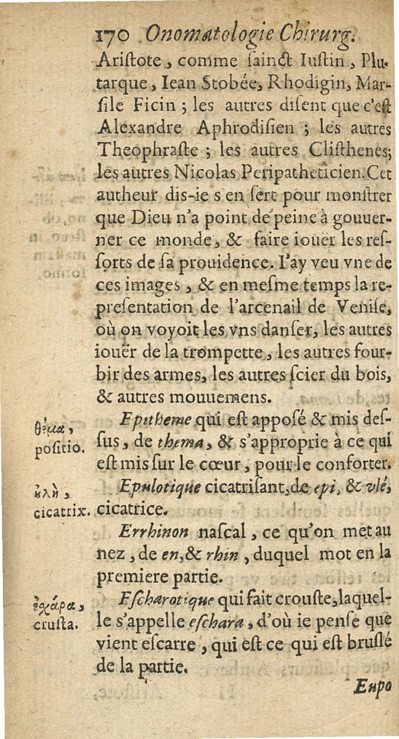 Onomatologie chirurgique ou explication des mots grecs appartenans à la chirurgie...avec un petit traicté de la correspondance des meteores...