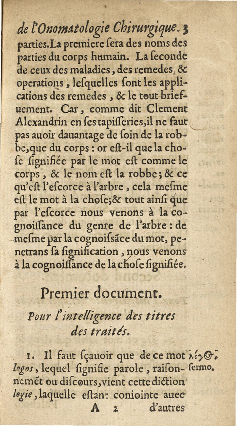 Onomatologie chirurgique ou explication des mots grecs appartenans à la chirurgie...avec un petit traicté de la correspondance des meteores...