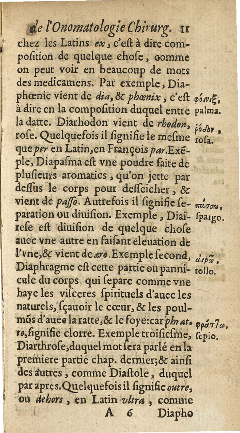 Onomatologie chirurgique ou explication des mots grecs appartenans à la chirurgie...avec un petit traicté de la correspondance des meteores...