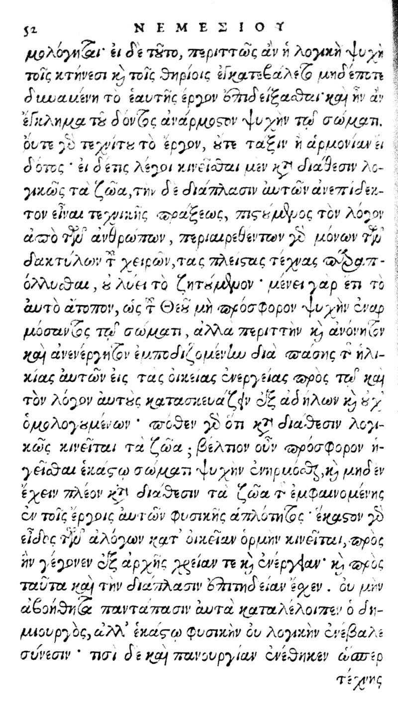 Nemesiou Peri fuseos anthropou biblion hen = Nemesii episcopi et philosophi De natura hominis, lib. unus, Nunc primum et in lucem editus, et Latine conversus a Nicasio Eilebodio Casletano