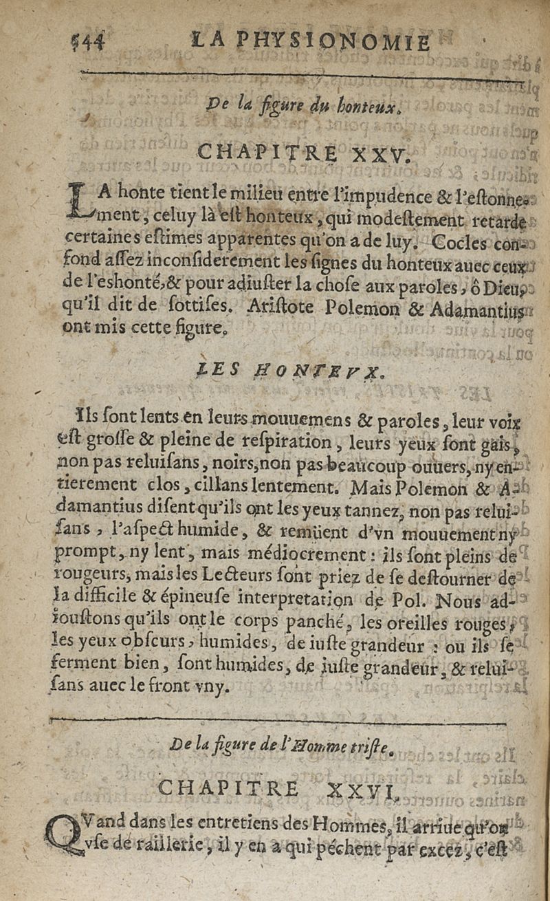 La physionomie humaine de Jean Baptiste Porta...diviséee en quatre livres...premiere edition