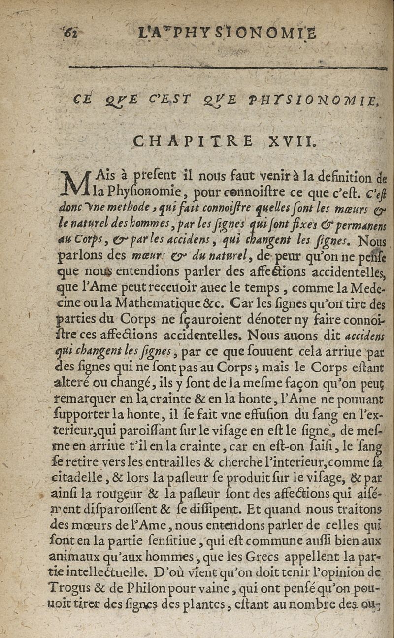 La physionomie humaine de Jean Baptiste Porta...diviséee en quatre livres...premiere edition