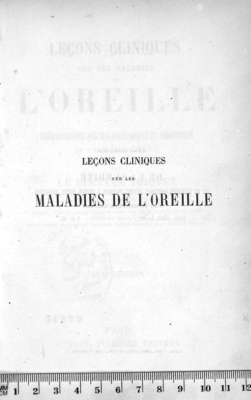 Leçons cliniques sur les maladies de l'oreille ou thérapeutique des maladies aiguës et chroniques de l'appareil auditif / [Première partie]