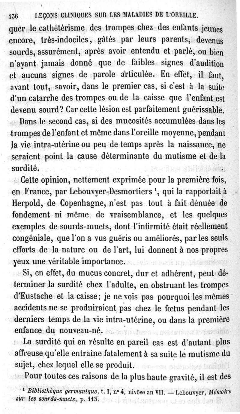 Leçons cliniques sur les maladies de l'oreille ou thérapeutique des maladies aiguës et chroniques de l'appareil auditif / [Première partie]