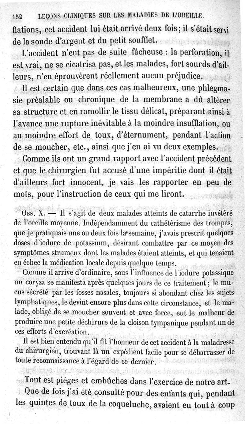 Leçons cliniques sur les maladies de l'oreille ou thérapeutique des maladies aiguës et chroniques de l'appareil auditif / [Première partie]