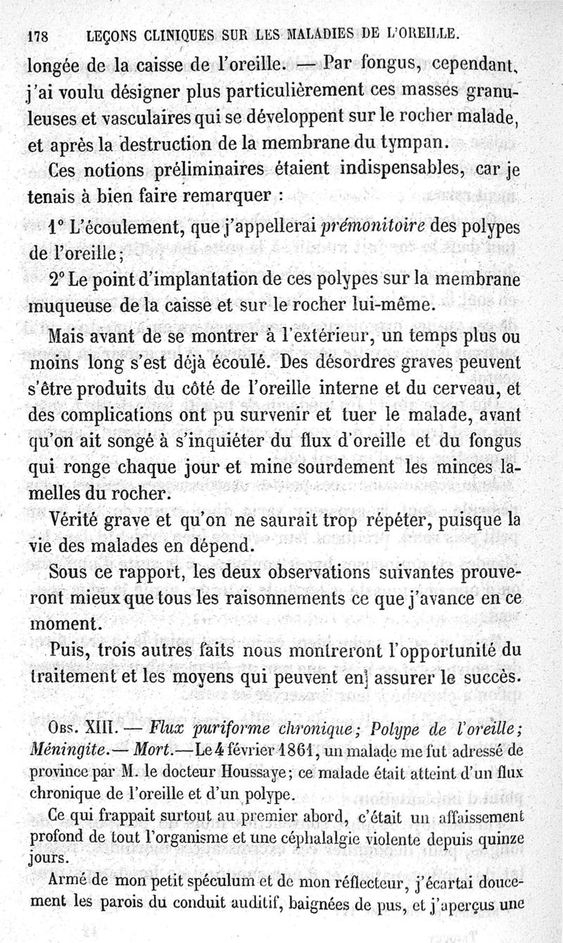 Leçons cliniques sur les maladies de l'oreille ou thérapeutique des maladies aiguës et chroniques de l'appareil auditif / [Première partie]
