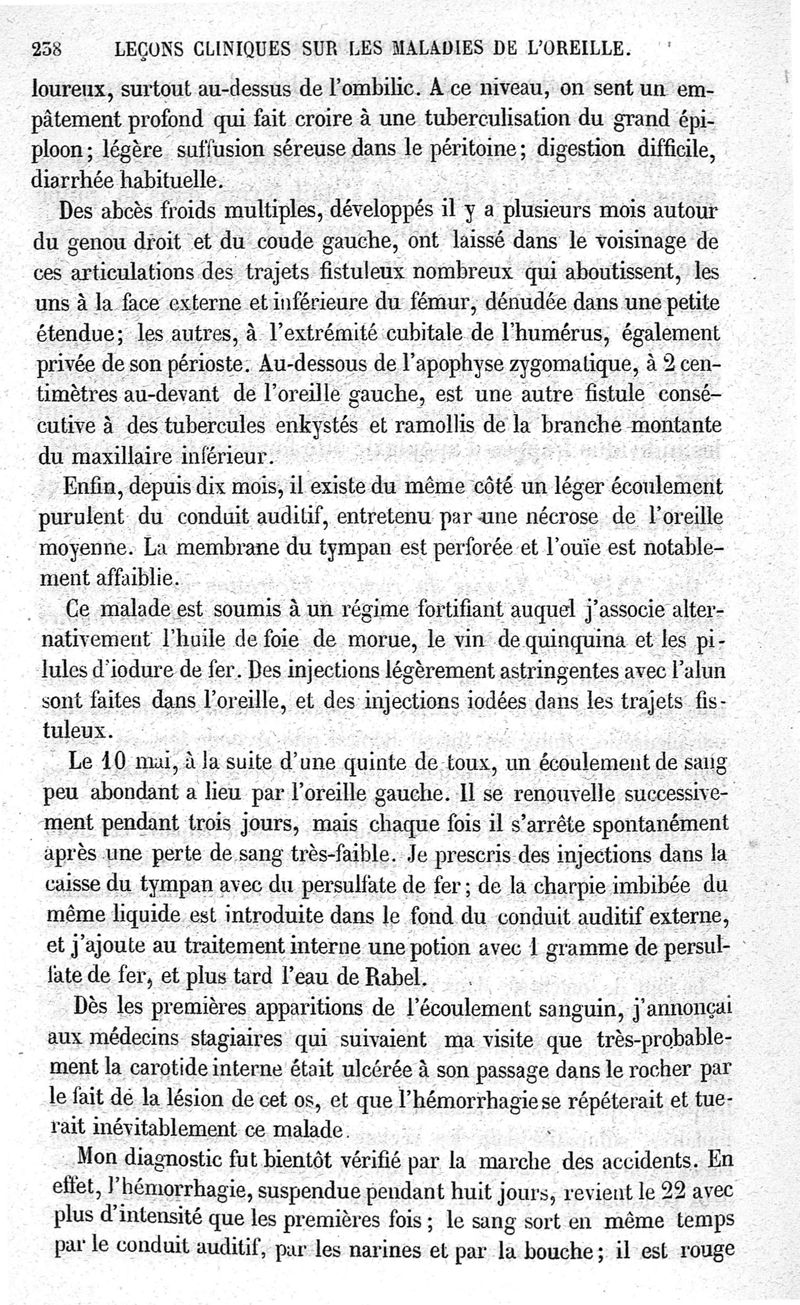 Leçons cliniques sur les maladies de l'oreille ou thérapeutique des maladies aiguës et chroniques de l'appareil auditif / [Première partie]