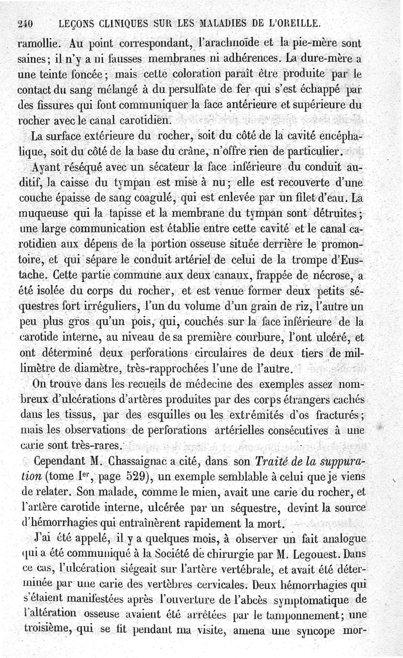 Leçons cliniques sur les maladies de l'oreille ou thérapeutique des maladies aiguës et chroniques de l'appareil auditif / [Première partie]