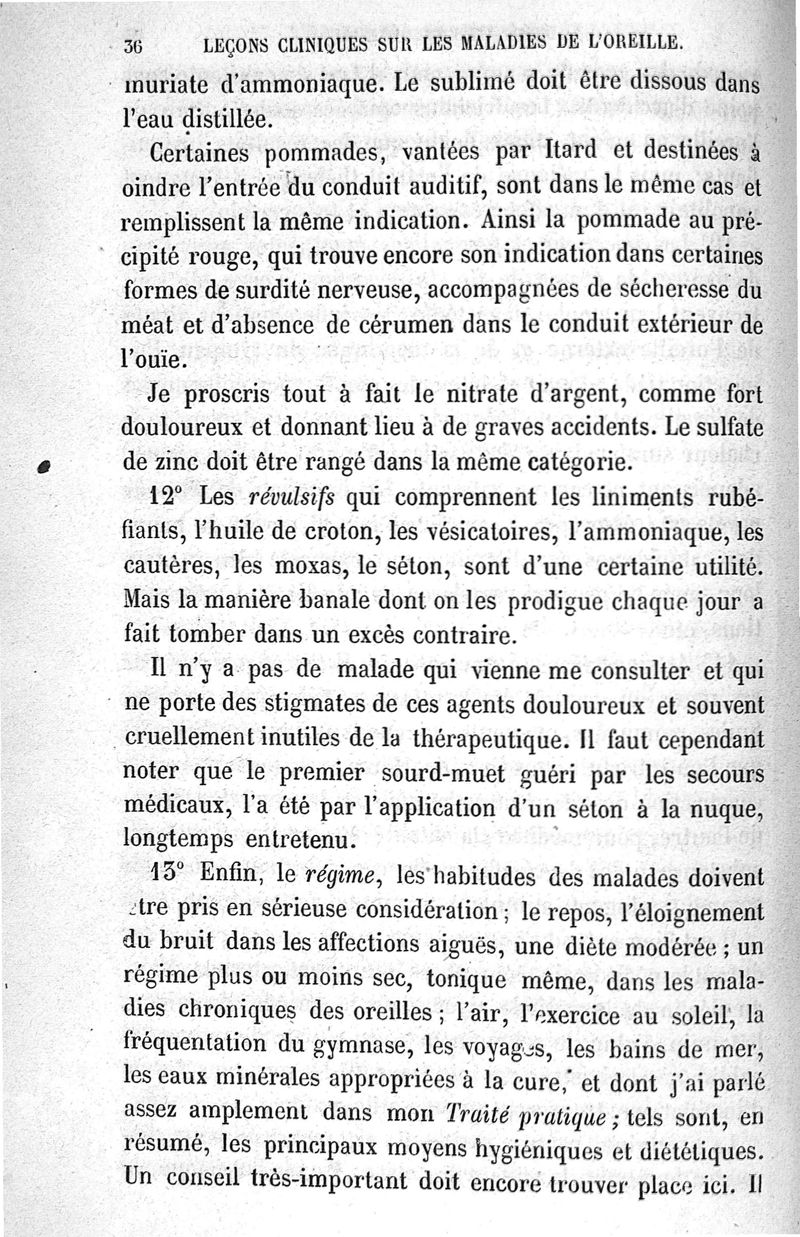 Leçons cliniques sur les maladies de l'oreille ou thérapeutique des maladies aiguës et chroniques de l'appareil auditif / [Première partie]