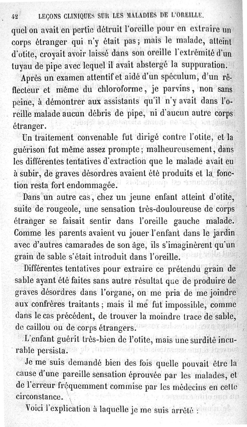 Leçons cliniques sur les maladies de l'oreille ou thérapeutique des maladies aiguës et chroniques de l'appareil auditif / [Première partie]