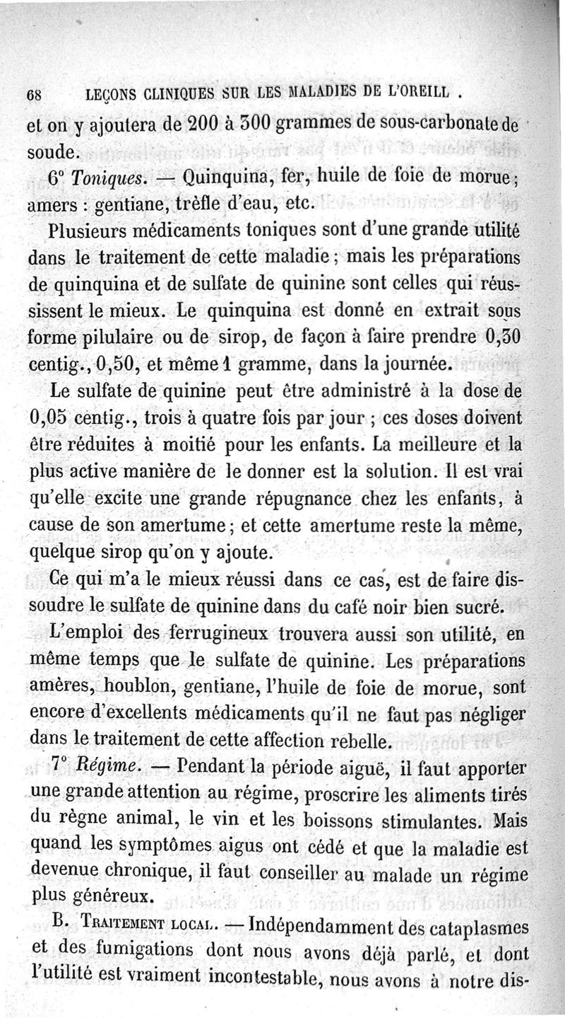 Leçons cliniques sur les maladies de l'oreille ou thérapeutique des maladies aiguës et chroniques de l'appareil auditif / [Première partie]