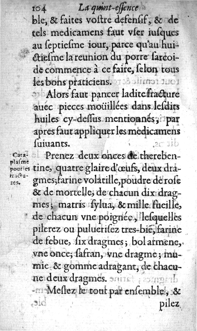 La Quintessence de la chirurgie reduicte en cinq parties. Avec un antidotaire...composée par Frere jean Germain de l'ordre des Peres Minimes
