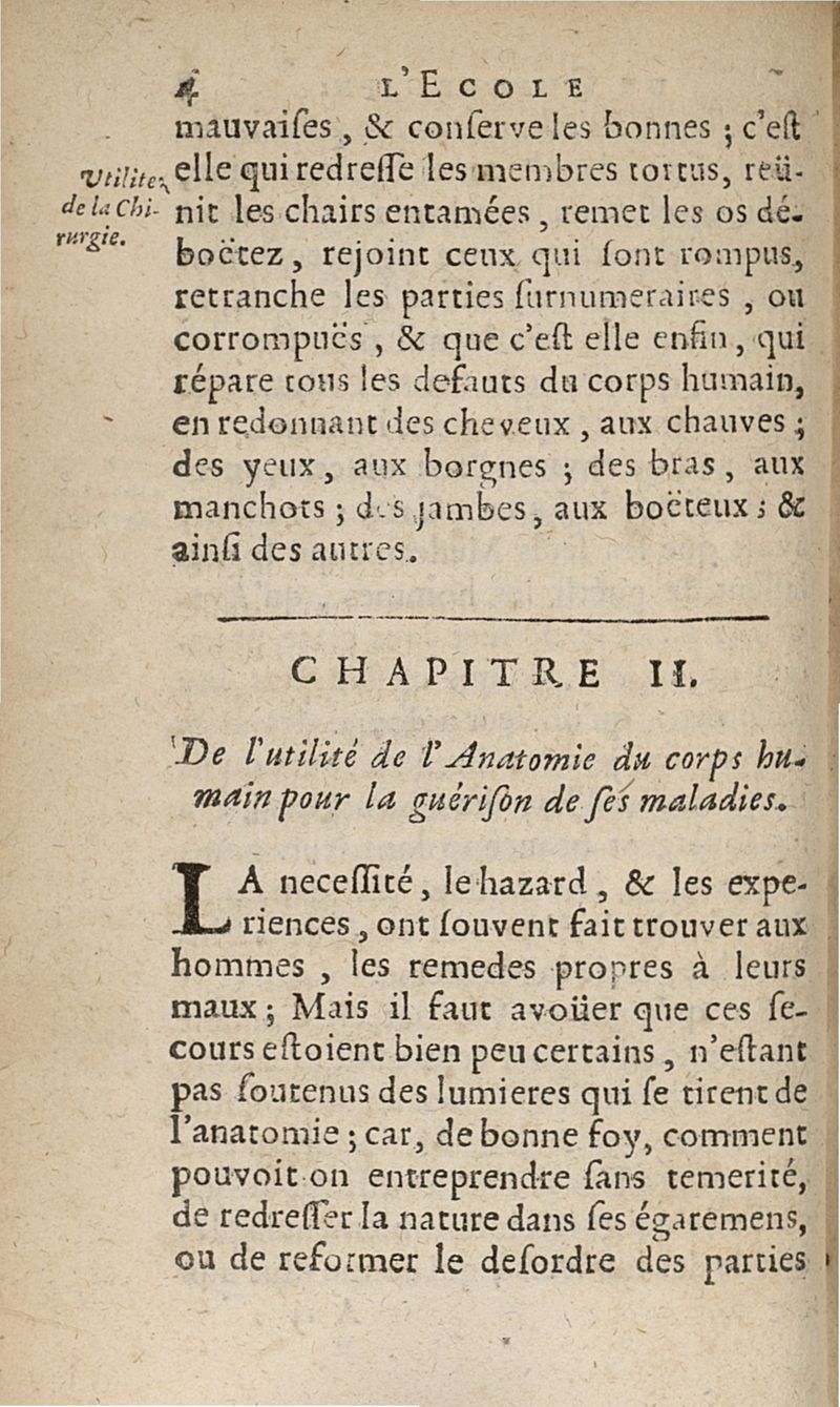 L'Ecole du chirurgien ou les principes de la chirurgie francoise. Tirez de la connoissance du corps humain en toutes ses parties,...