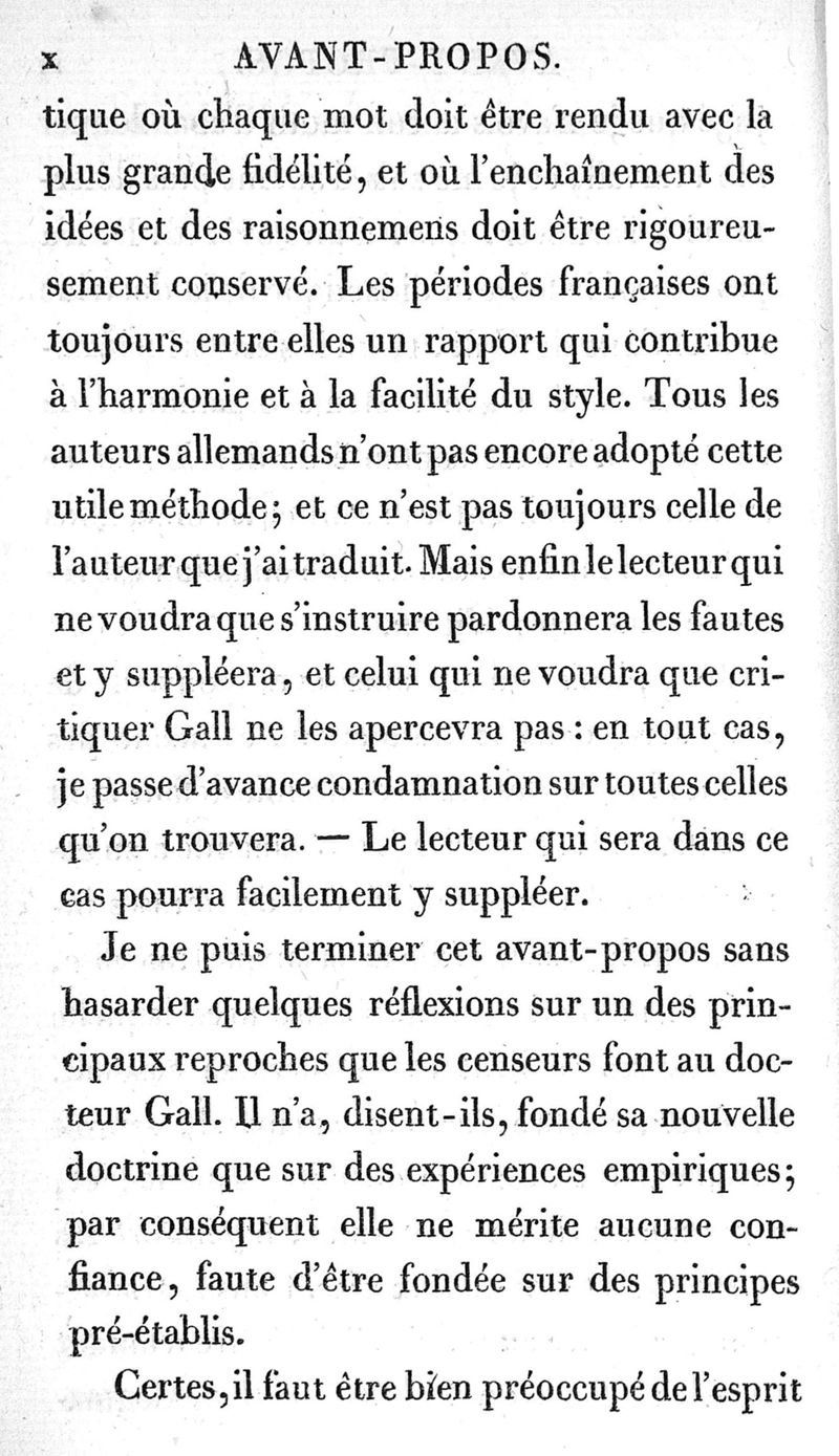 Cranologie ou découvertes nouvelles du Dr F.J. Gall, concernant le cerveau, le crâne, et les organes. Ouvrage traduit de l'allemand