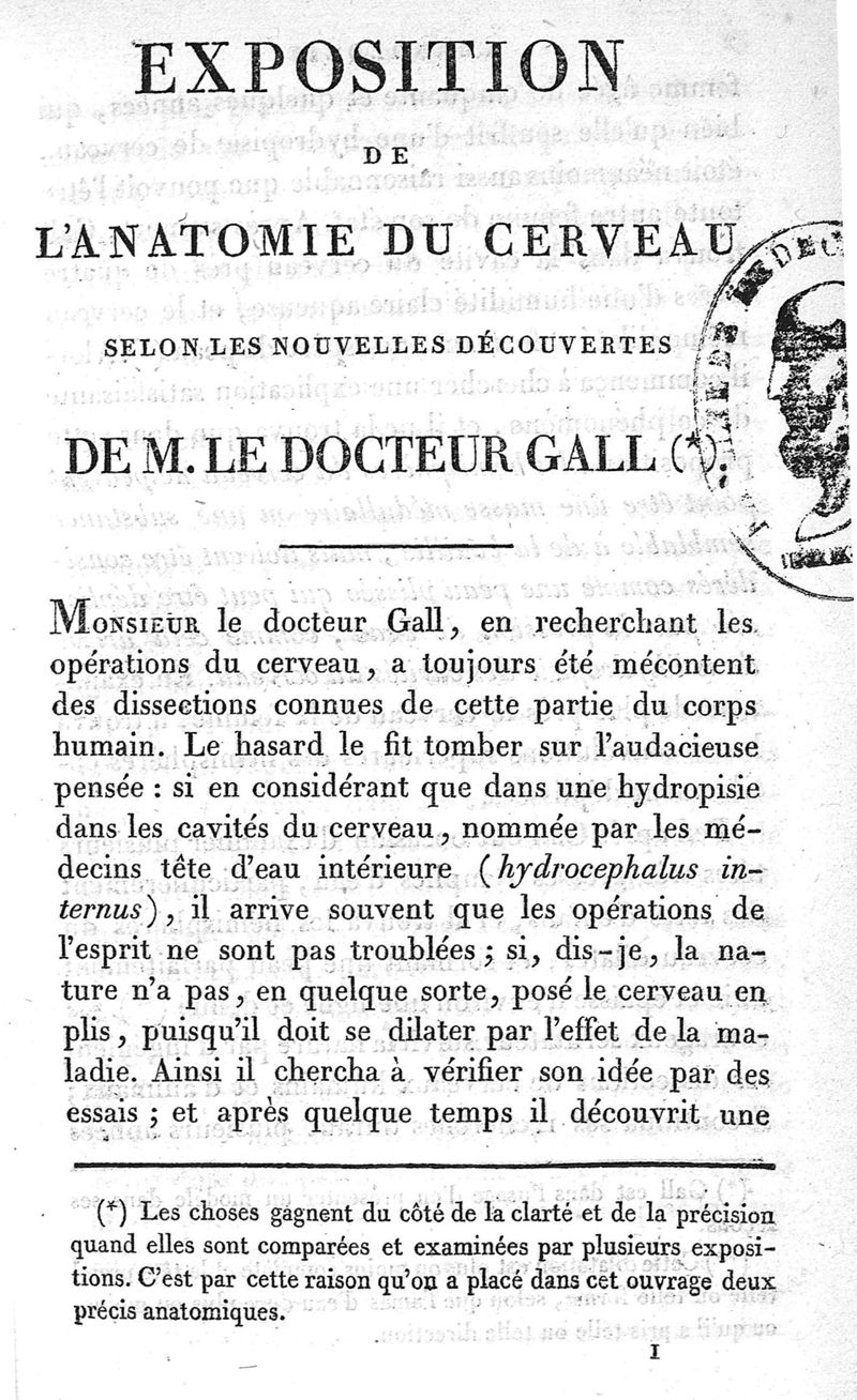 Cranologie ou découvertes nouvelles du Dr F.J. Gall, concernant le cerveau, le crâne, et les organes. Ouvrage traduit de l'allemand