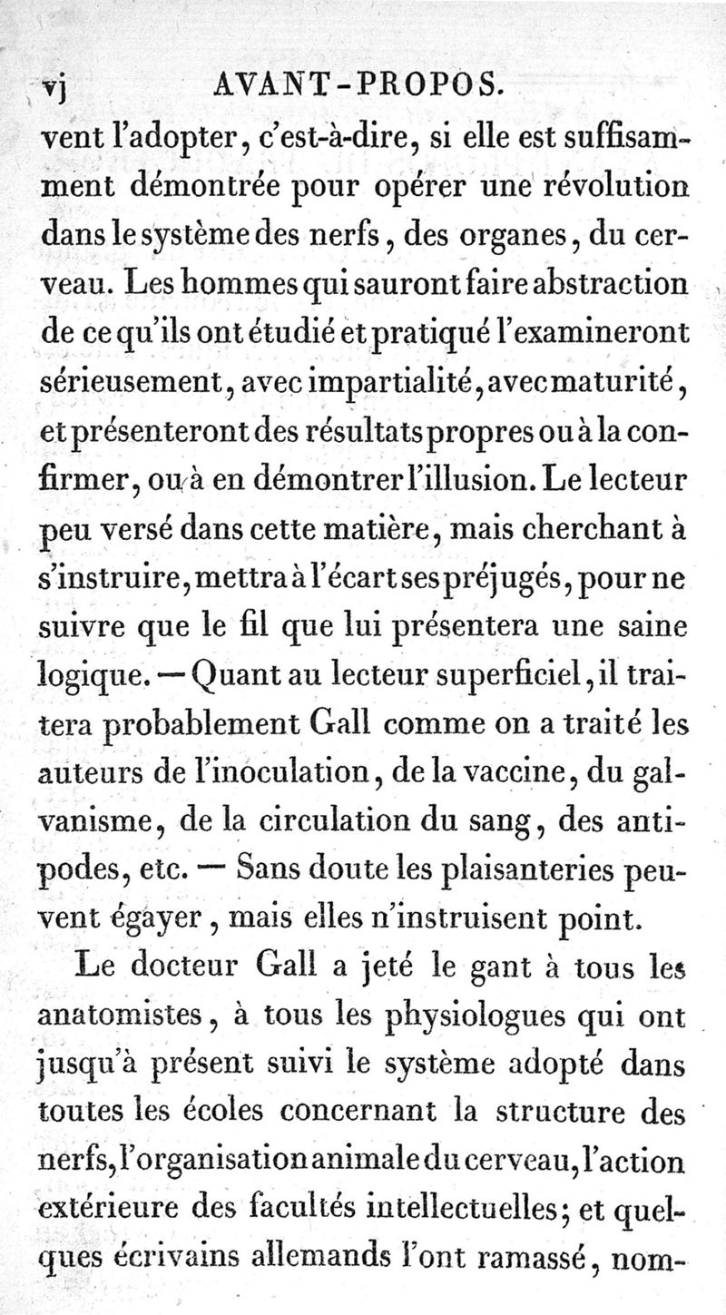 Cranologie ou découvertes nouvelles du Dr F.J. Gall, concernant le cerveau, le crâne, et les organes. Ouvrage traduit de l'allemand