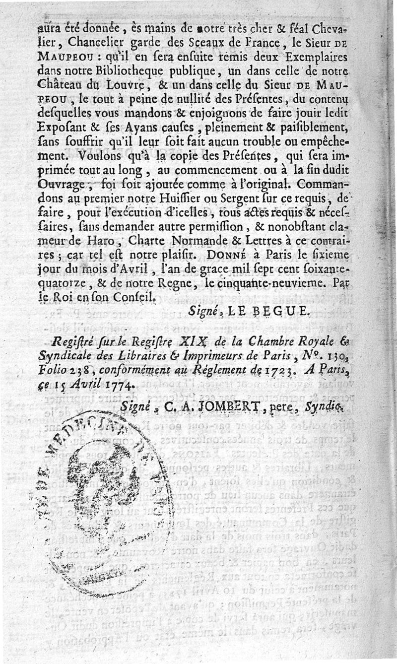 Paris : Didot le jeune, 1774.