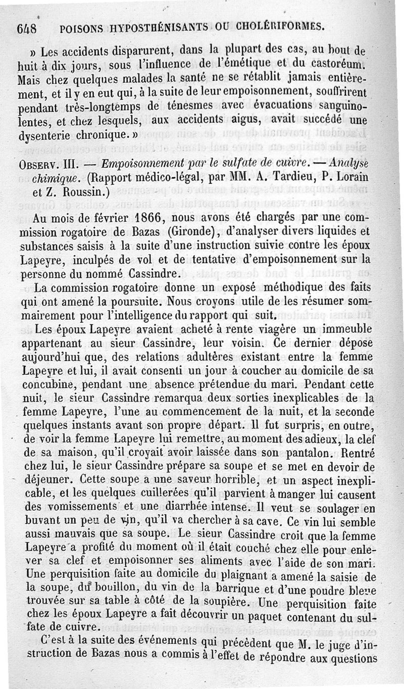 Etude médico-légale et clinique sur l'empoisonnement par Ambroise Tardieu, avec la collab. de Z. Roussin ; 2è éd. revue et considérablement augmentée