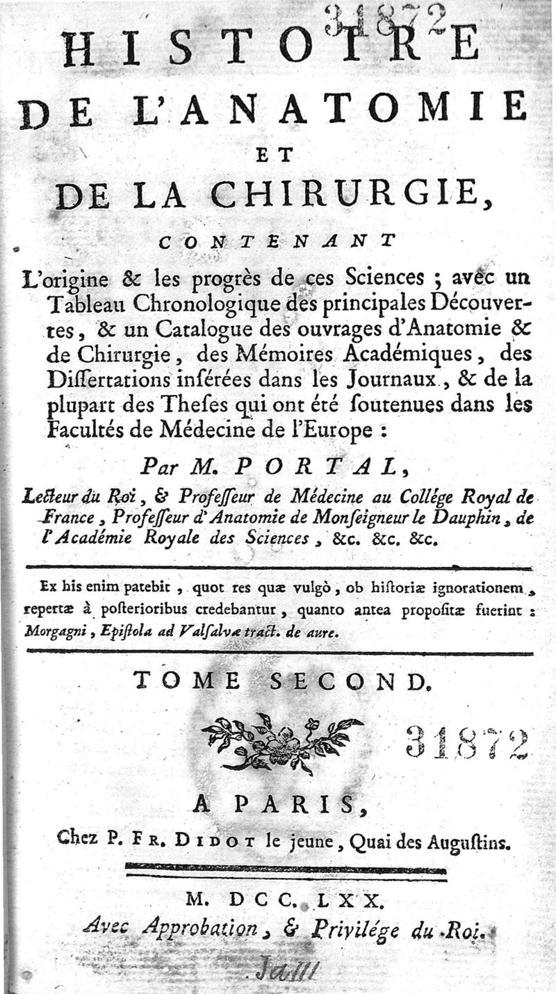 Histoire de l'anatomie et de la chirurgie, contenant l'origine et les progrès de ces sciences... Tome second