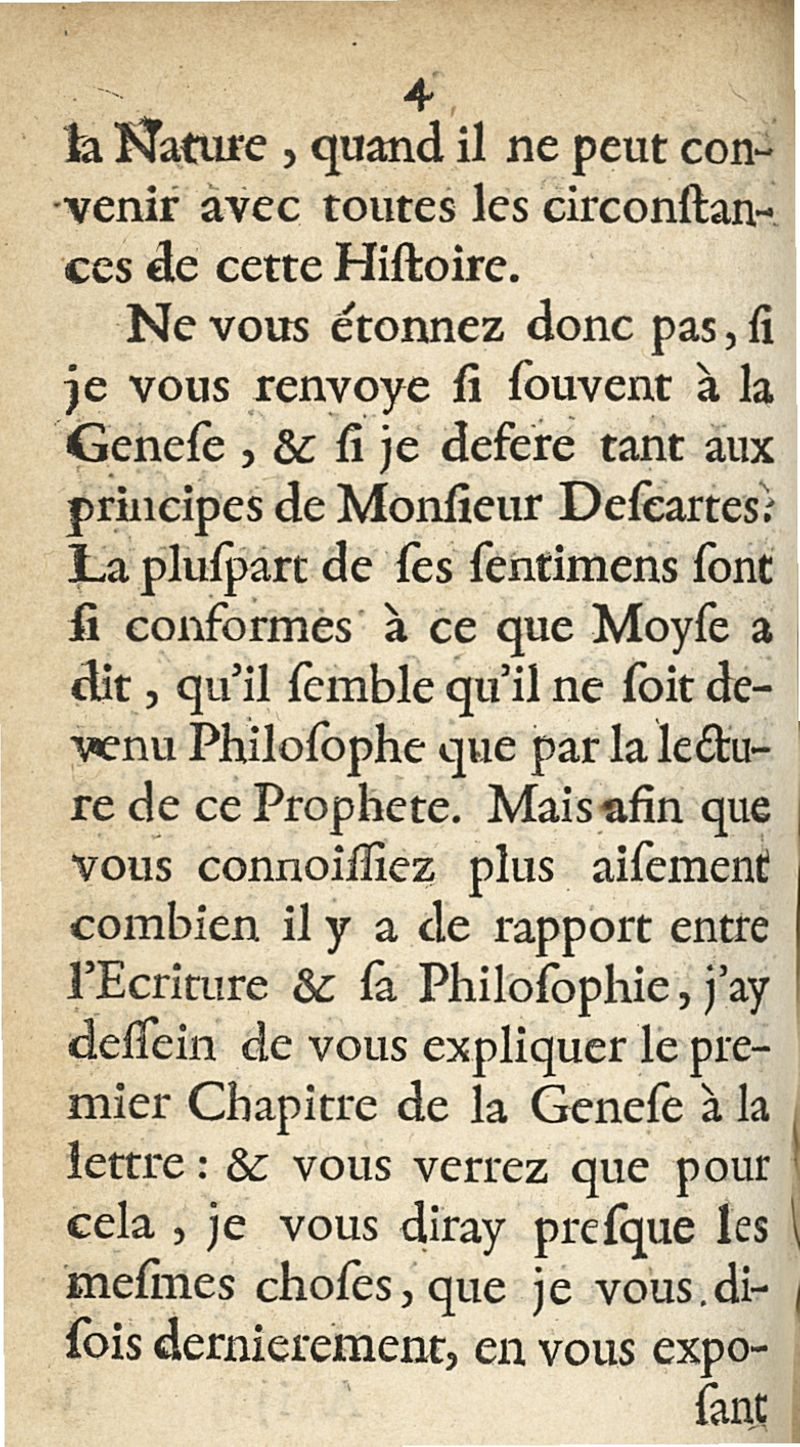 Copie d'une lettre écrite à un sçavant religieux de la Compagnie de Jesus pour montrer, I. Que le systeme de monsieur Descartes, & son opinion touchant les bestes, n'ont rien de dangereux. II. Et que ce qu'il en a écrit, semble estre tiré du premier chapitre de la Genese