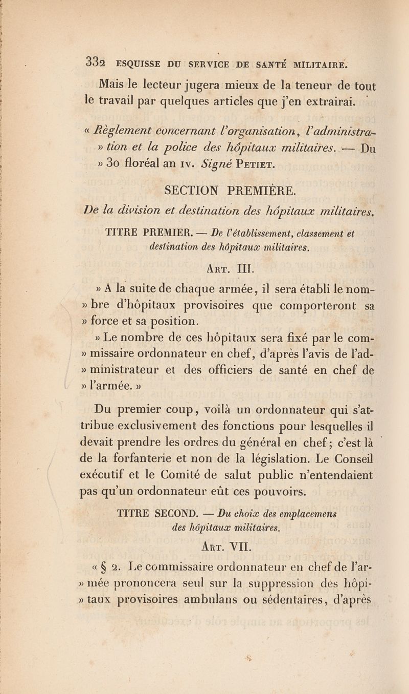 Esquisse historique du service de santé militaire en général, et spécialement du service chirurgical depuis l'établissement des hôpitaux militaires en France