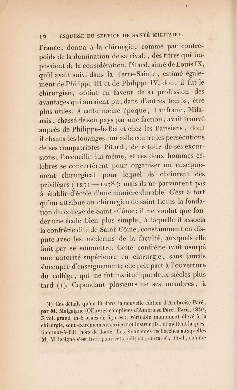 Esquisse historique du service de santé militaire en général, et spécialement du service chirurgical depuis l'établissement des hôpitaux militaires en France