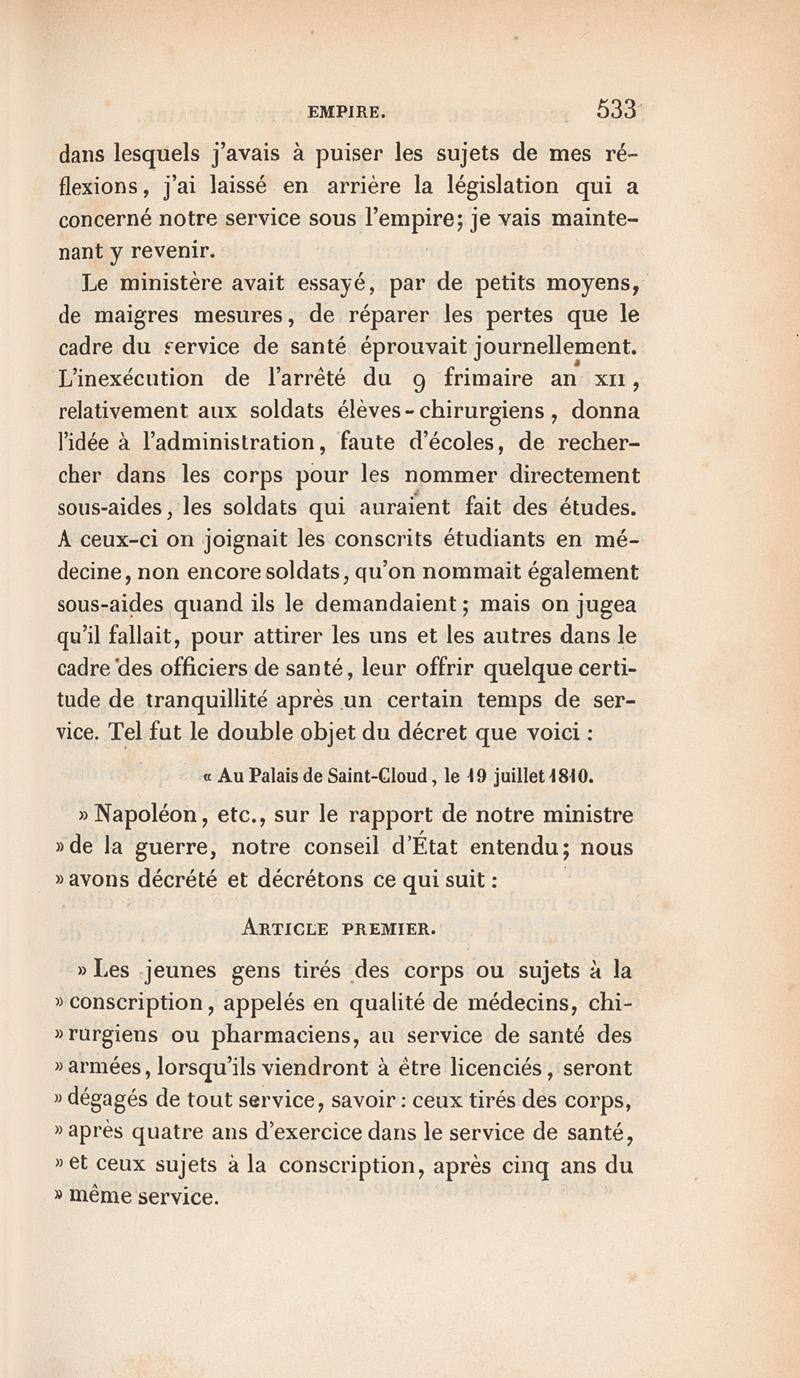 Esquisse historique du service de santé militaire en général, et spécialement du service chirurgical depuis l'établissement des hôpitaux militaires en France