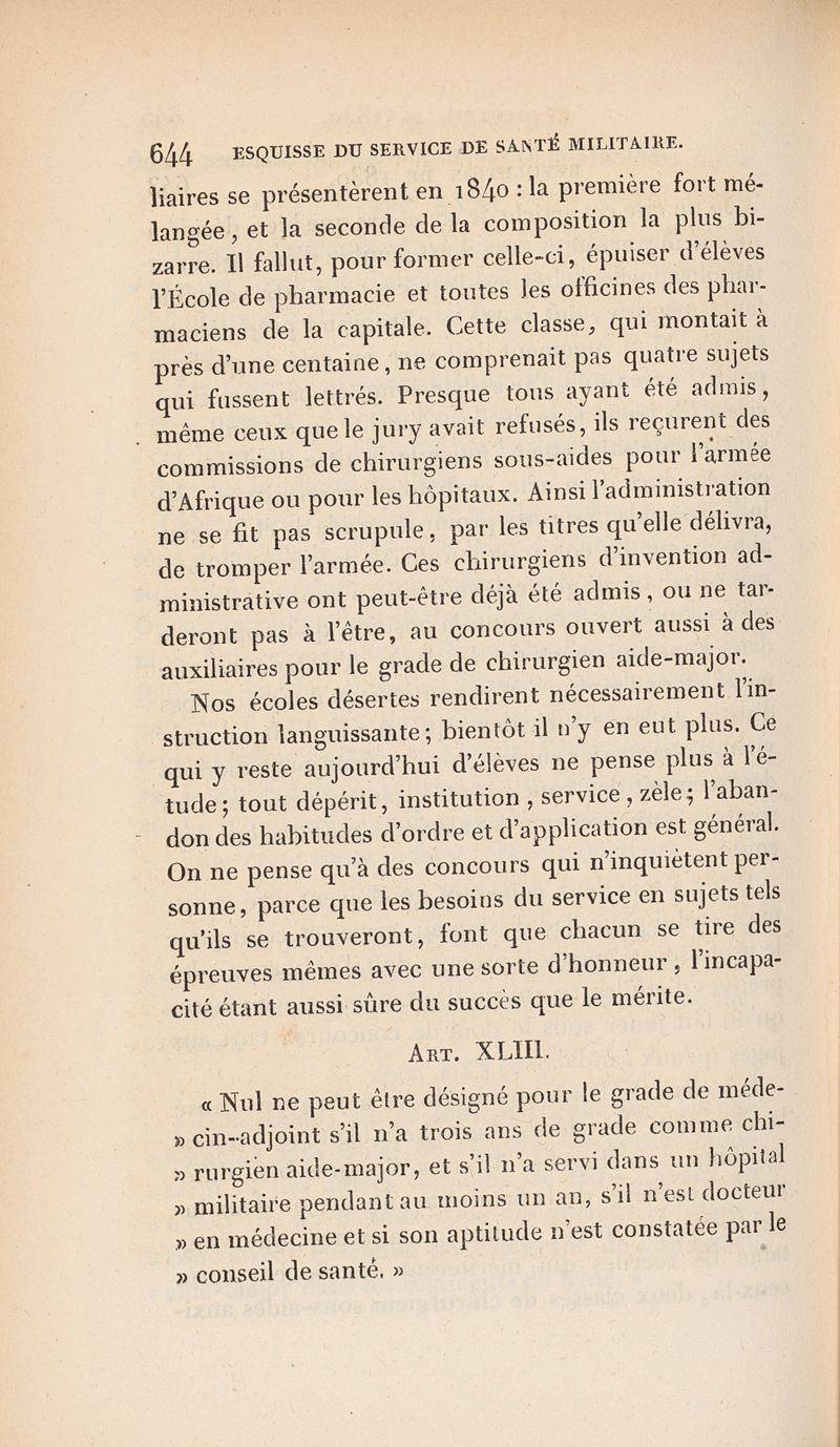 Esquisse historique du service de santé militaire en général, et spécialement du service chirurgical depuis l'établissement des hôpitaux militaires en France