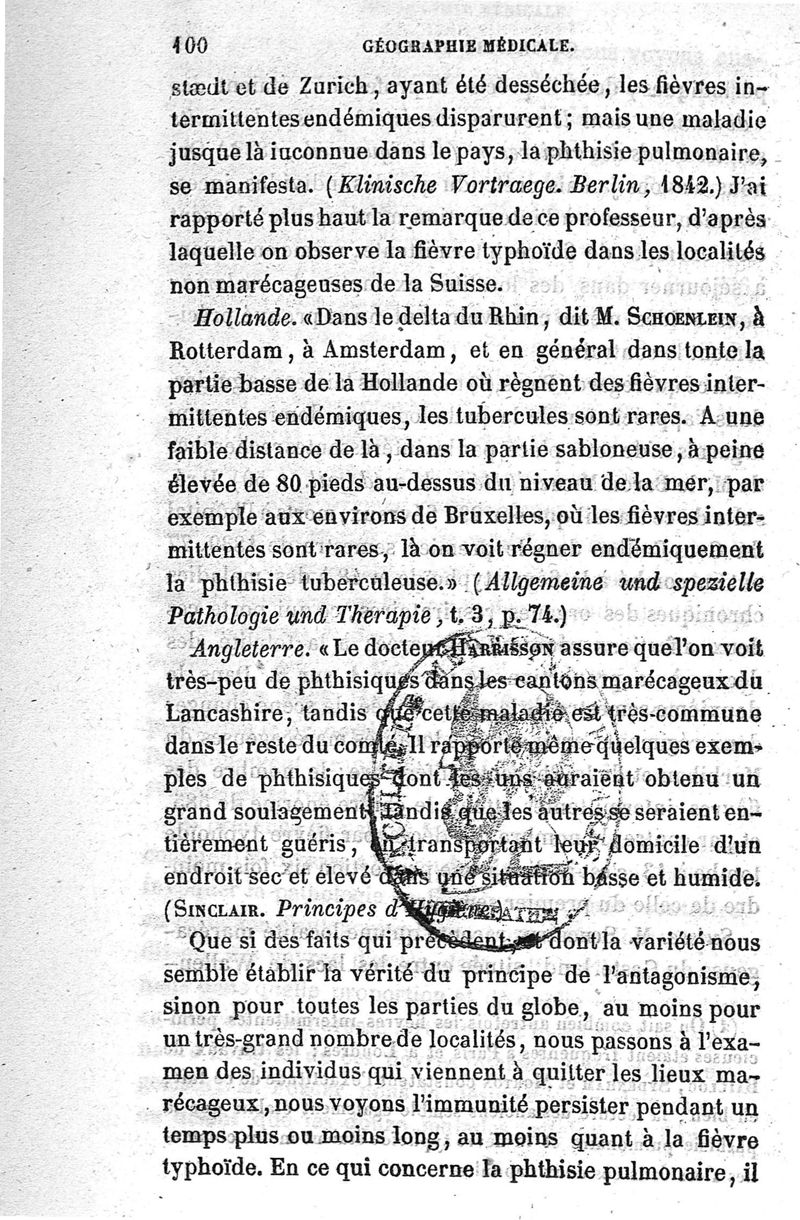 Essai de géographie médicale ou étude sur les lois qui président à la distribution géographique des maladies, ainsi qu'à leurs rapports topographiques entre elles, lois de coïncidence et d'antagonisme