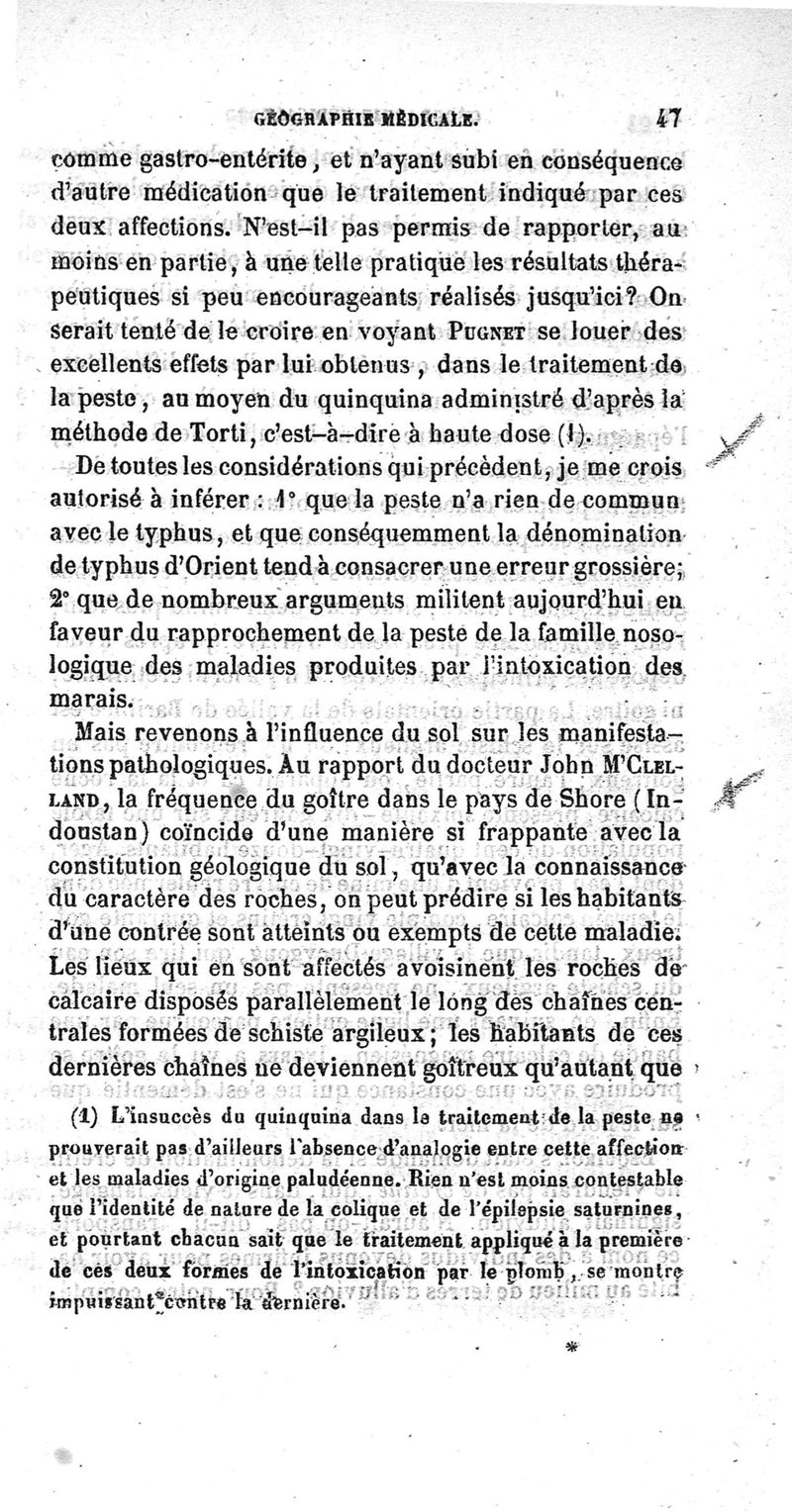 Essai de géographie médicale ou étude sur les lois qui président à la distribution géographique des maladies, ainsi qu'à leurs rapports topographiques entre elles, lois de coïncidence et d'antagonisme