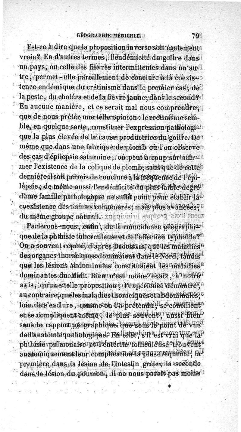 Essai de géographie médicale ou étude sur les lois qui président à la distribution géographique des maladies, ainsi qu'à leurs rapports topographiques entre elles, lois de coïncidence et d'antagonisme