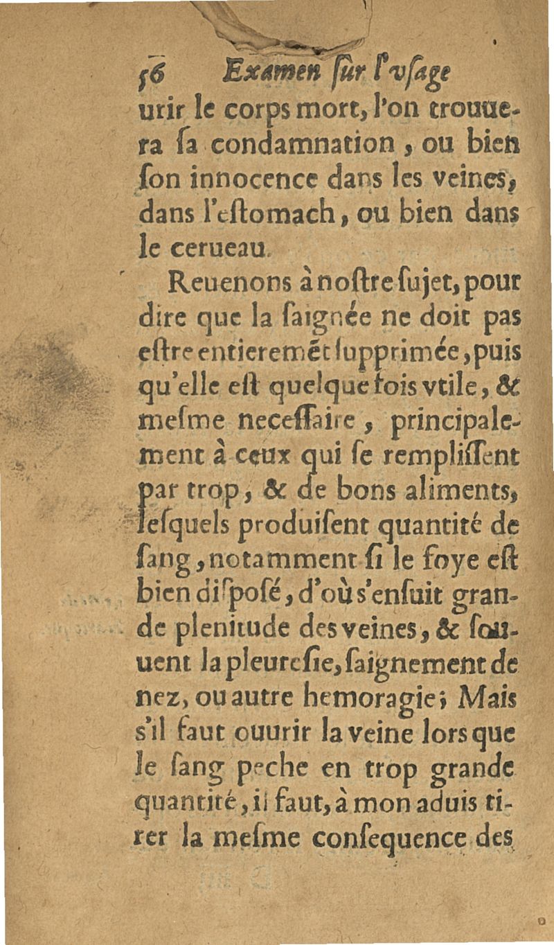 Examen ou raisonnement sur l'usage de la saignée. avec un parfaite cognoissance des facultez & vertus du sang, et des autres humeurs