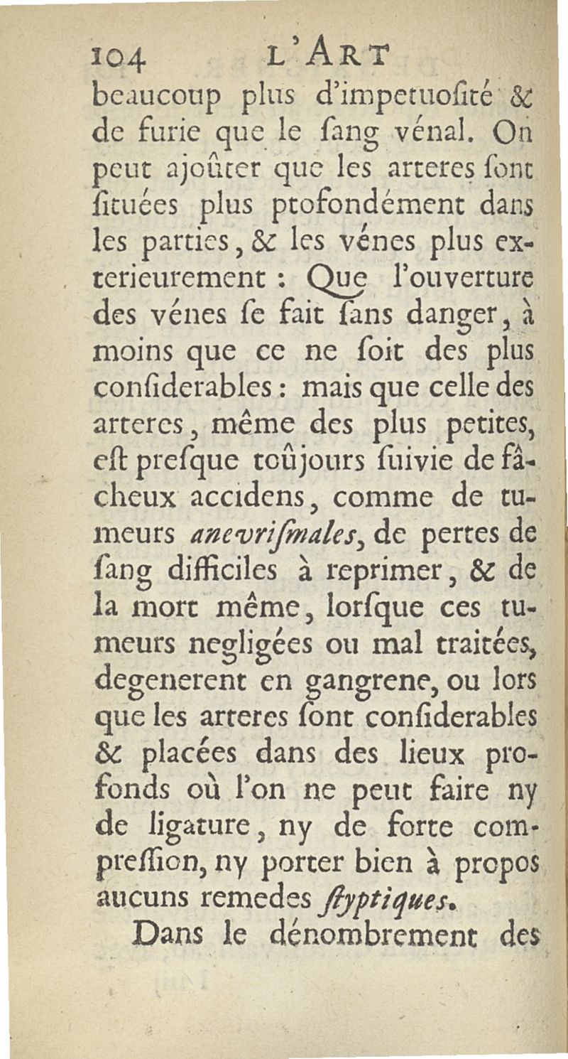 L'art de saigner, accommodé aux principes de la circulation du sang...