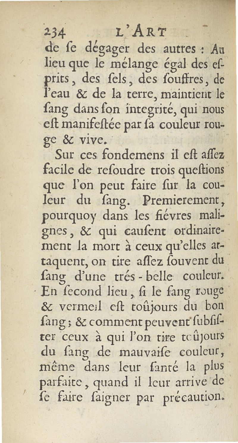 L'art de saigner, accommodé aux principes de la circulation du sang...