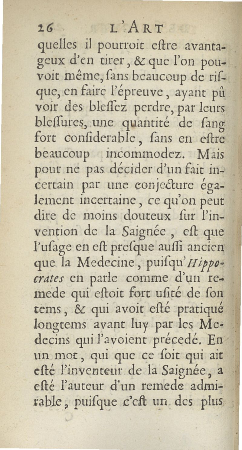 L'art de saigner, accommodé aux principes de la circulation du sang...