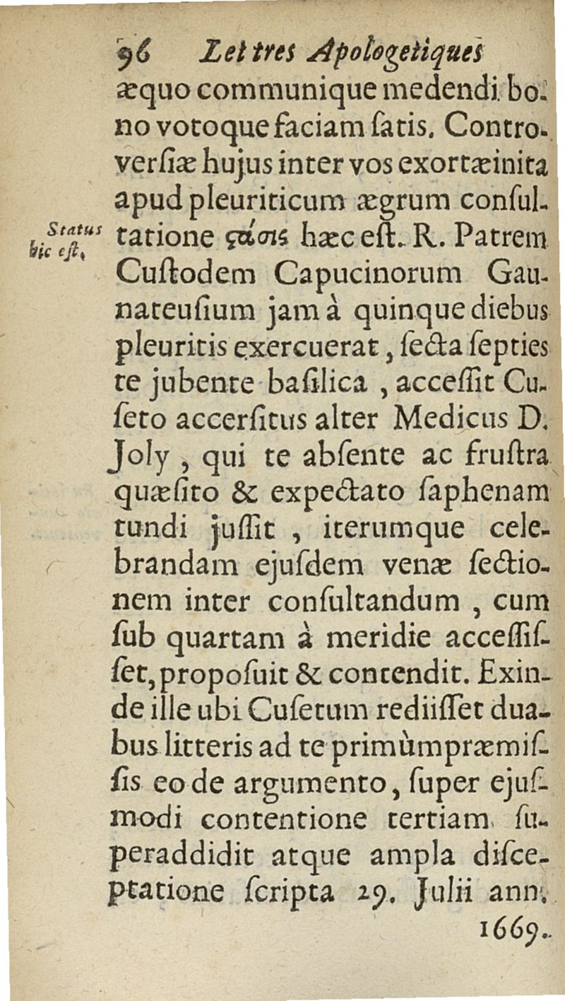 lettres apologetiques du Sr Ferrand,...adressées à Me I....dans lesquelles il est traité & prouvé qu'il ne faut point saigner les pleuretiques au pied...