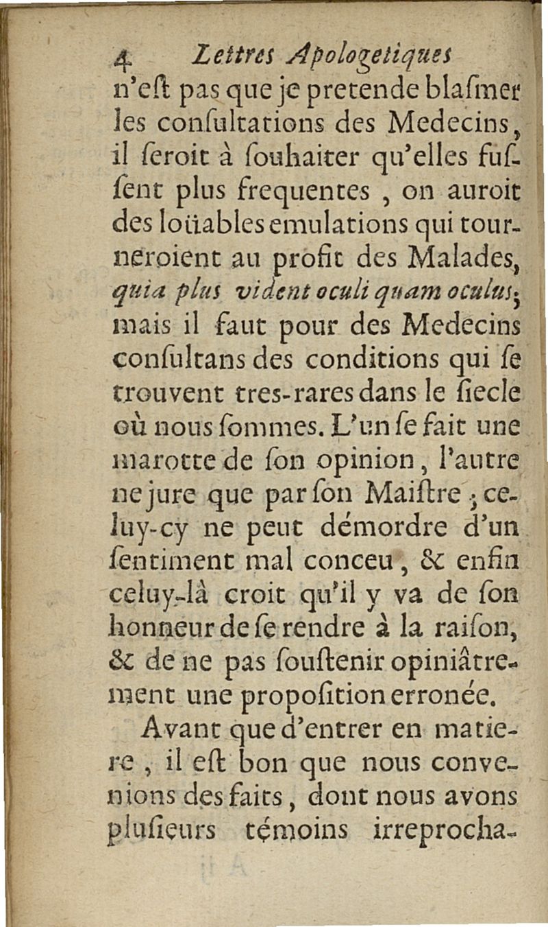 lettres apologetiques du Sr Ferrand,...adressées à Me I....dans lesquelles il est traité & prouvé qu'il ne faut point saigner les pleuretiques au pied...