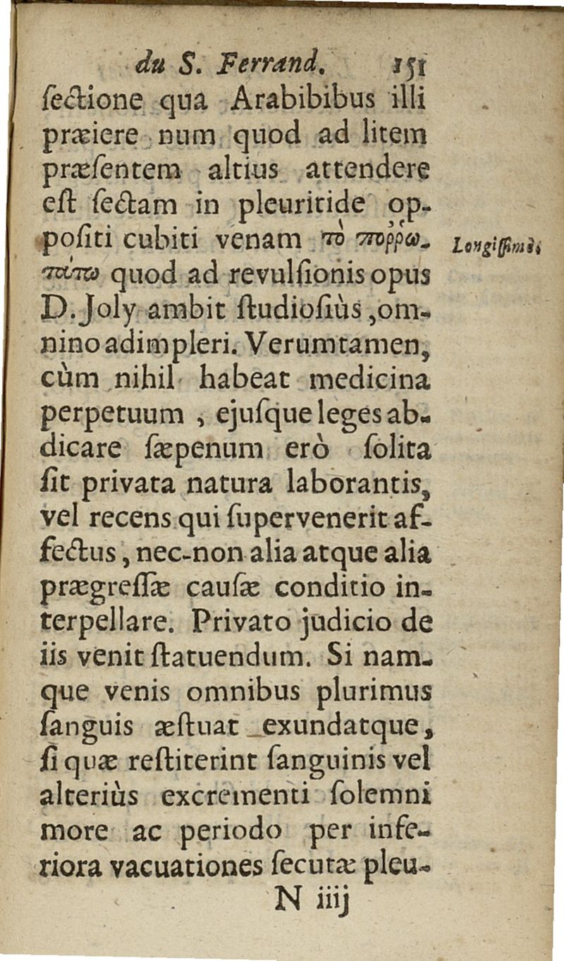 lettres apologetiques du Sr Ferrand,...adressées à Me I....dans lesquelles il est traité & prouvé qu'il ne faut point saigner les pleuretiques au pied...