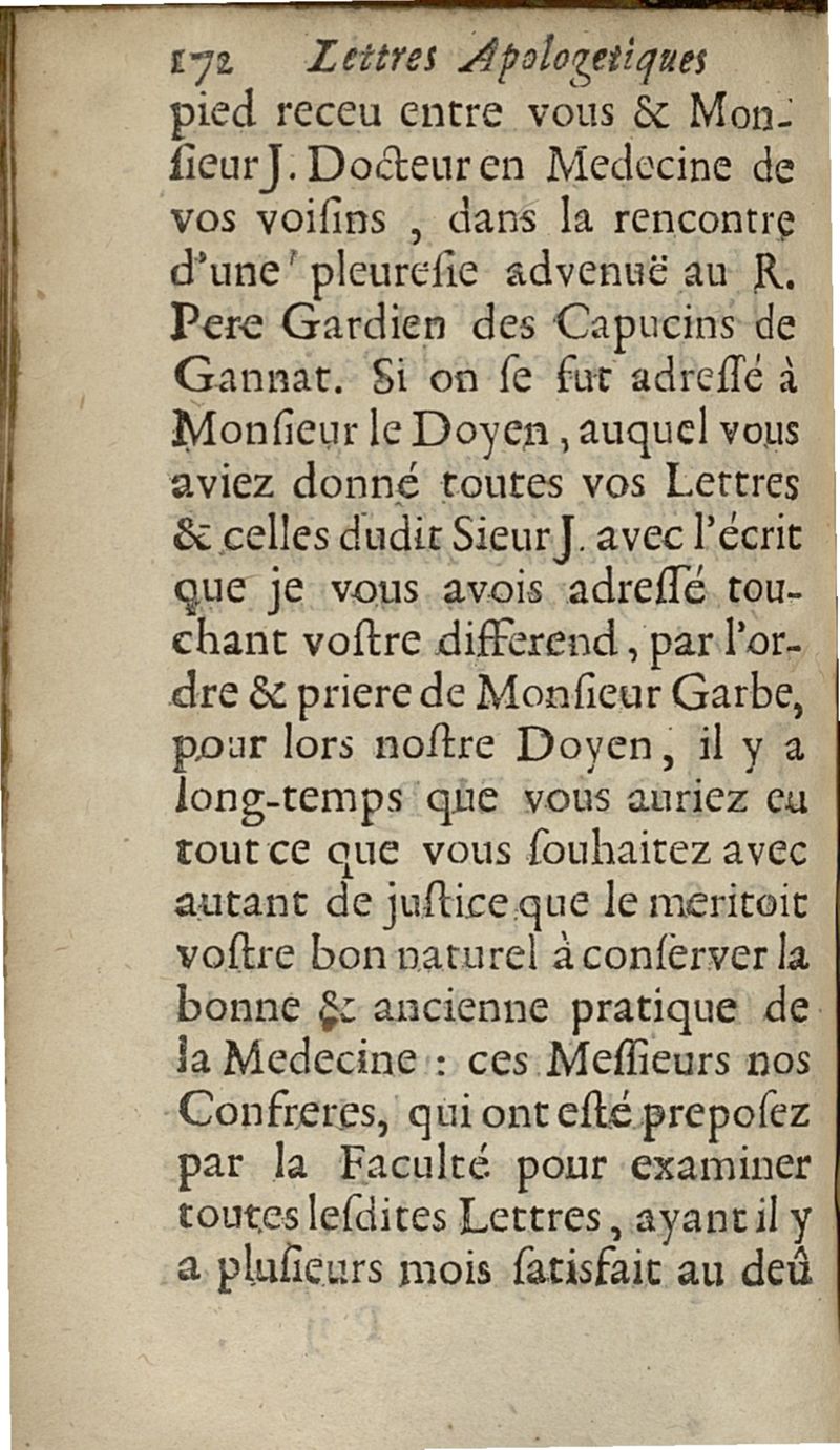 lettres apologetiques du Sr Ferrand,...adressées à Me I....dans lesquelles il est traité & prouvé qu'il ne faut point saigner les pleuretiques au pied...