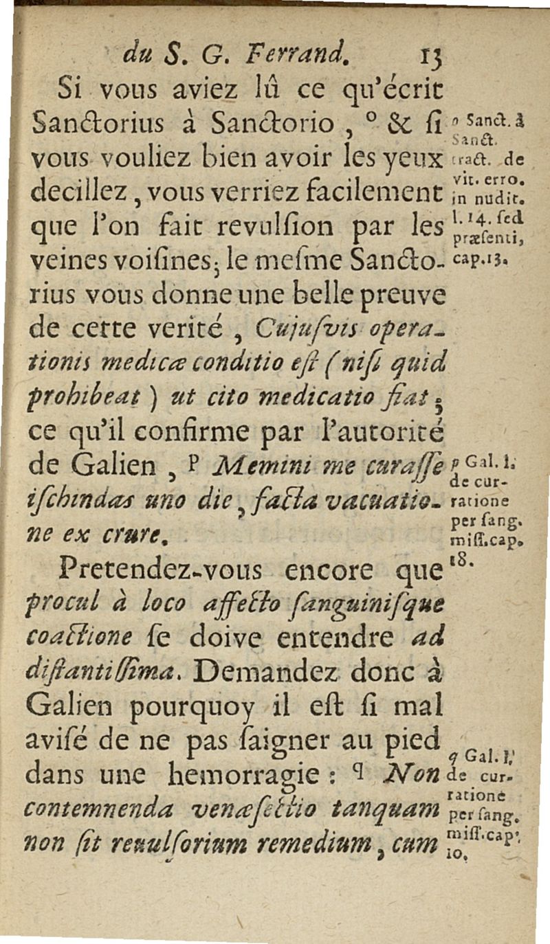 lettres apologetiques du Sr Ferrand,...adressées à Me I....dans lesquelles il est traité & prouvé qu'il ne faut point saigner les pleuretiques au pied...