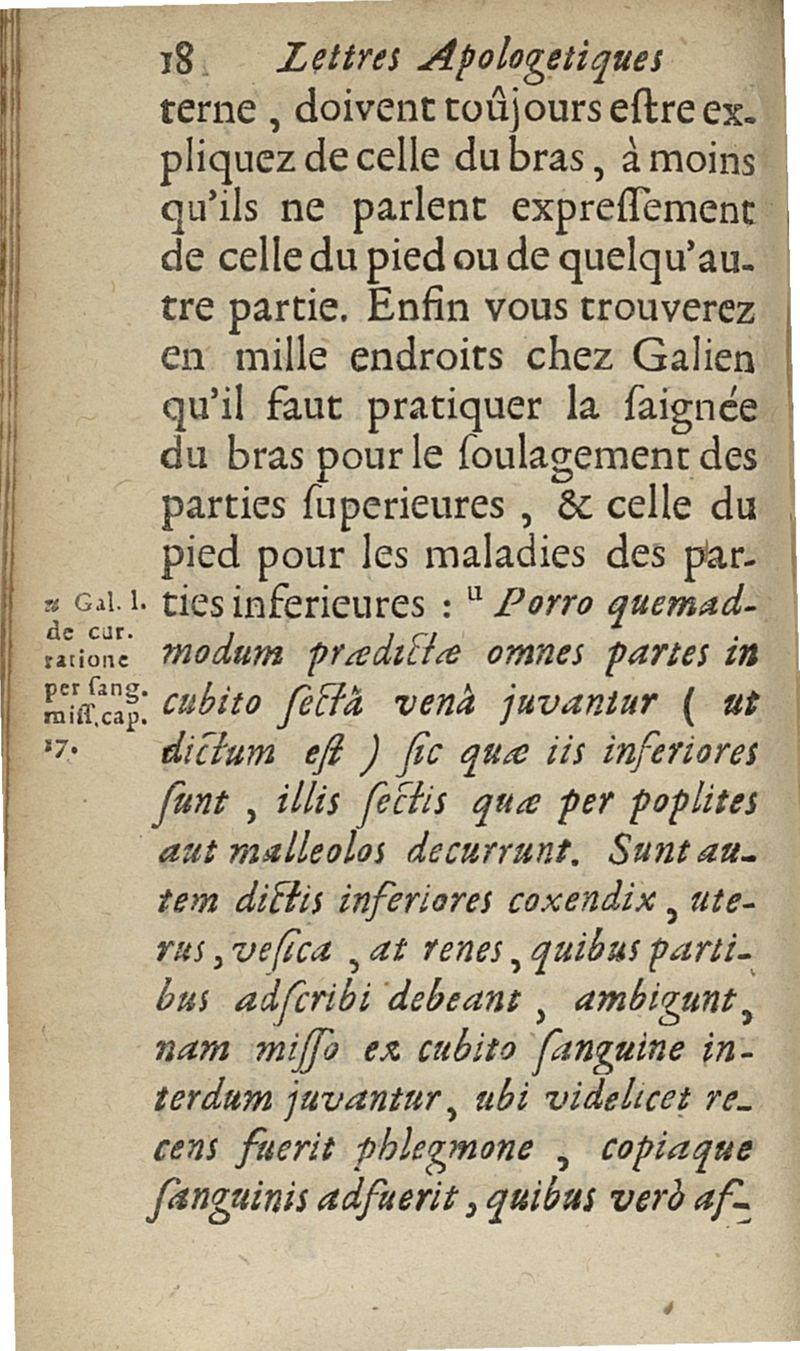 lettres apologetiques du Sr Ferrand,...adressées à Me I....dans lesquelles il est traité & prouvé qu'il ne faut point saigner les pleuretiques au pied...