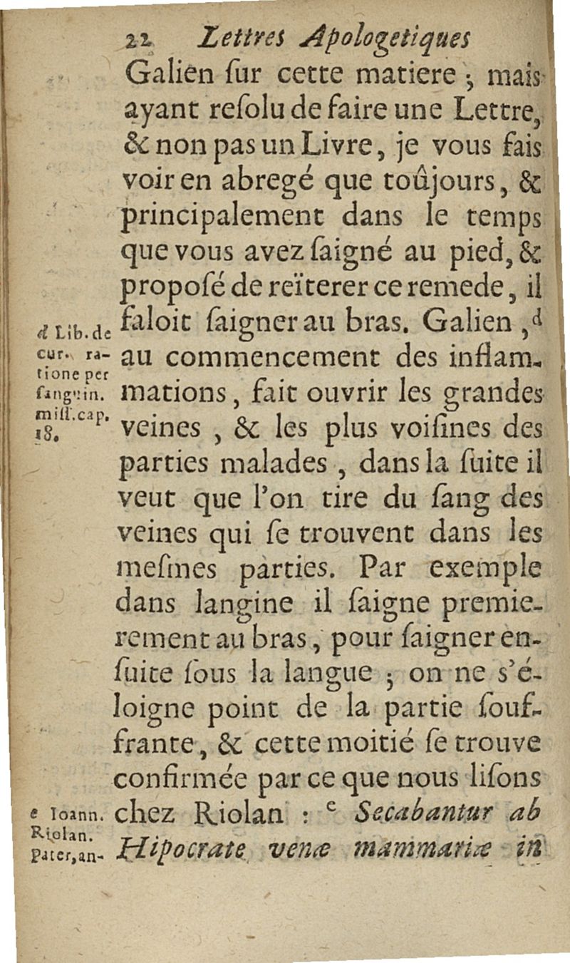 lettres apologetiques du Sr Ferrand,...adressées à Me I....dans lesquelles il est traité & prouvé qu'il ne faut point saigner les pleuretiques au pied...