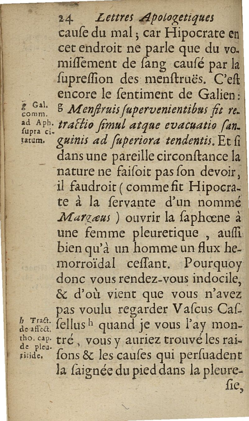 lettres apologetiques du Sr Ferrand,...adressées à Me I....dans lesquelles il est traité & prouvé qu'il ne faut point saigner les pleuretiques au pied...