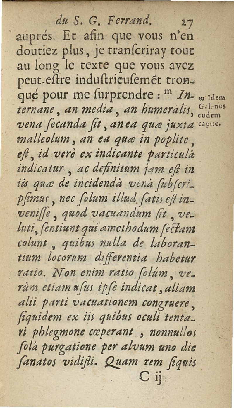 lettres apologetiques du Sr Ferrand,...adressées à Me I....dans lesquelles il est traité & prouvé qu'il ne faut point saigner les pleuretiques au pied...