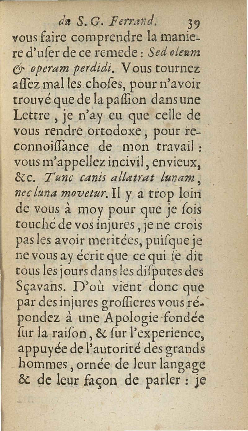 lettres apologetiques du Sr Ferrand,...adressées à Me I....dans lesquelles il est traité & prouvé qu'il ne faut point saigner les pleuretiques au pied...