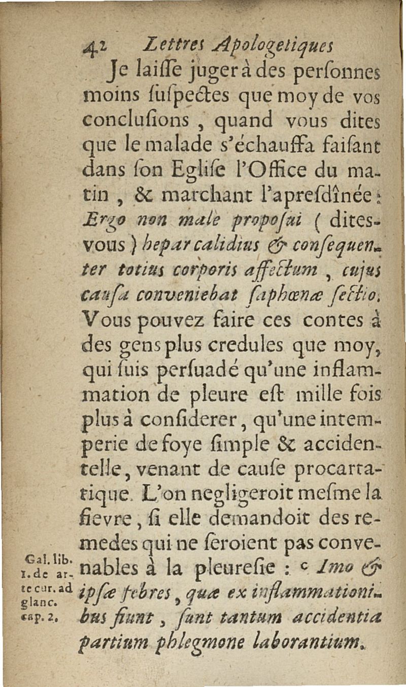 lettres apologetiques du Sr Ferrand,...adressées à Me I....dans lesquelles il est traité & prouvé qu'il ne faut point saigner les pleuretiques au pied...