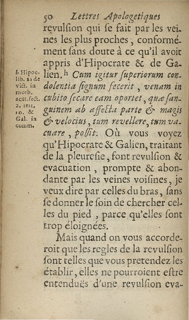 lettres apologetiques du Sr Ferrand,...adressées à Me I....dans lesquelles il est traité & prouvé qu'il ne faut point saigner les pleuretiques au pied...