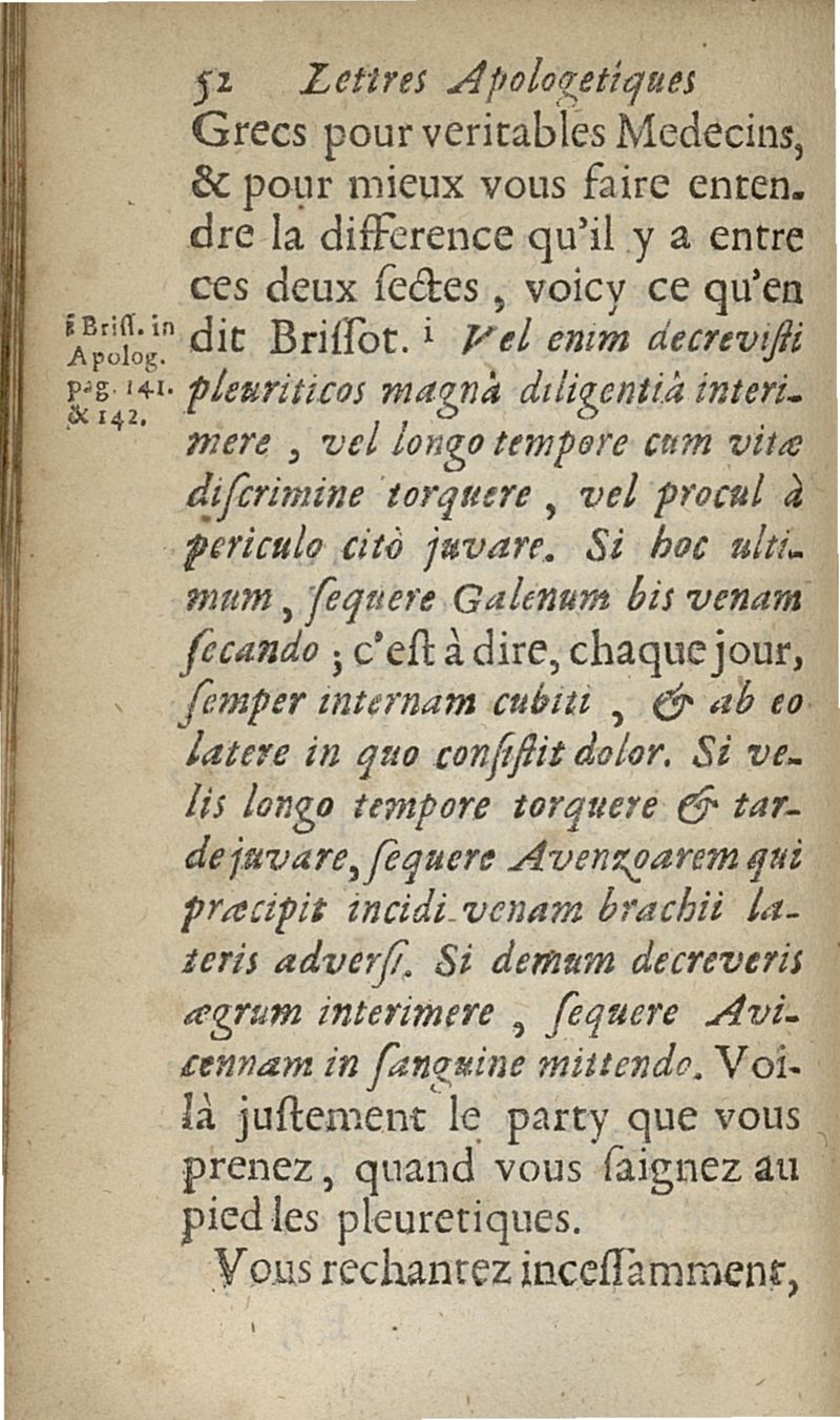 lettres apologetiques du Sr Ferrand,...adressées à Me I....dans lesquelles il est traité & prouvé qu'il ne faut point saigner les pleuretiques au pied...