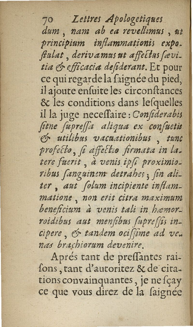 lettres apologetiques du Sr Ferrand,...adressées à Me I....dans lesquelles il est traité & prouvé qu'il ne faut point saigner les pleuretiques au pied...