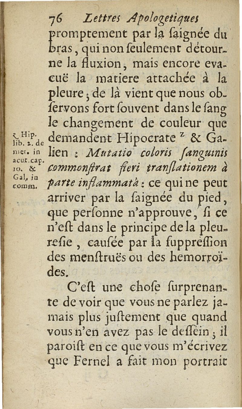 lettres apologetiques du Sr Ferrand,...adressées à Me I....dans lesquelles il est traité & prouvé qu'il ne faut point saigner les pleuretiques au pied...